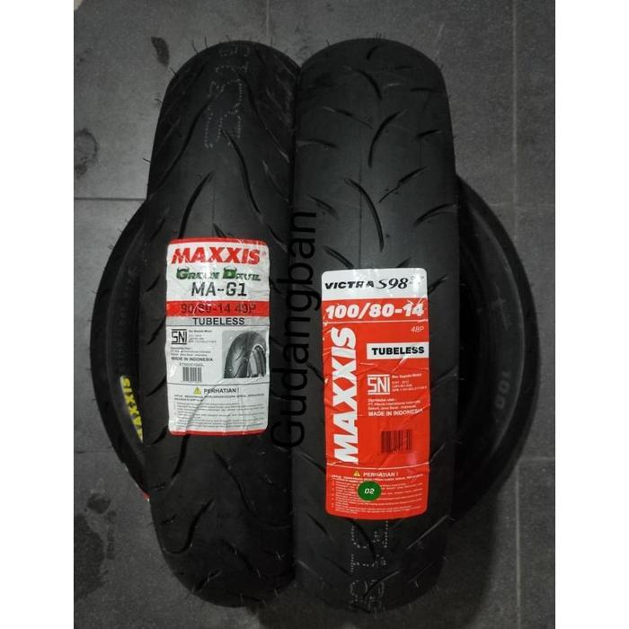 Paket Maxxis 90 80 14 green devil 100 80 14 victra Ban Luar Motor Matic TUBELESS FREE