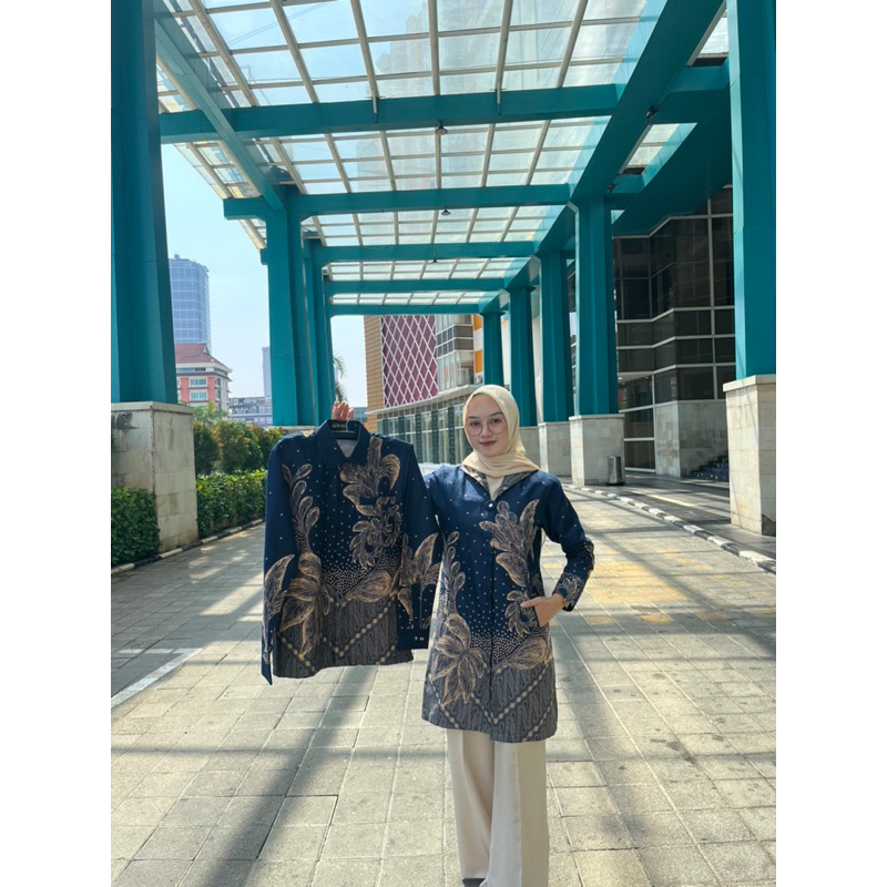 Batik Couple Motif Anggrek Navy Full Lapisan Tricot