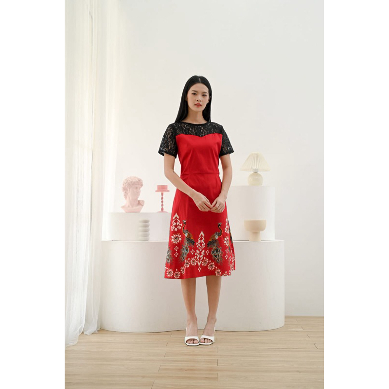 Couple batik merah imlek / Set batik wanita dress kemeja pria merah CNY / dress qipao RED HILI