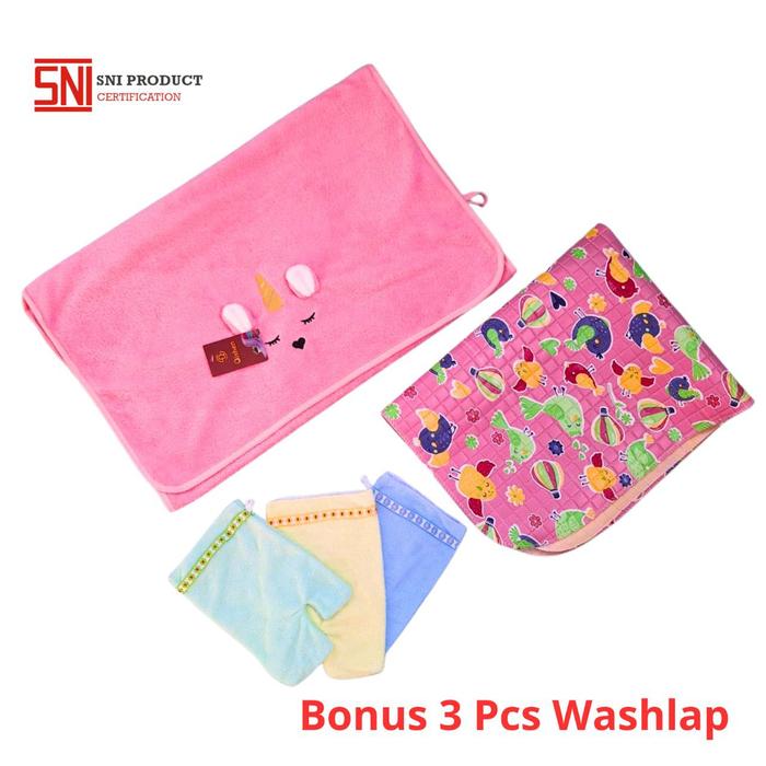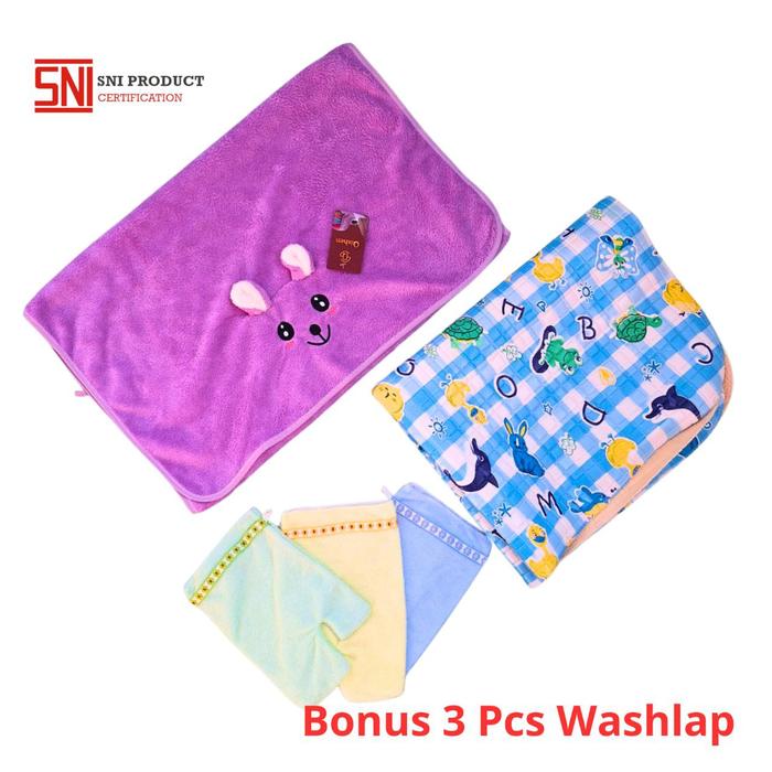 PAKET HEMAT HANDUK BAYI BARU LAHIR PERLAK DAN 3 WASHLAP BABY NEWBORN PERLENGKAPAN MANDI BAYI SOUVENIR - BLUE