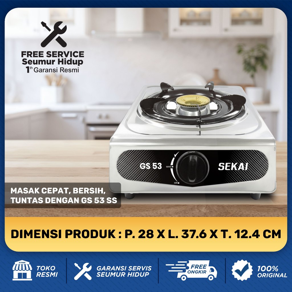 SEKAI Kompor Gas 1 & 2 Tungku Stainless Steel Anti Lengket - GS 51 / GS 92 / GS 53 / GS 93