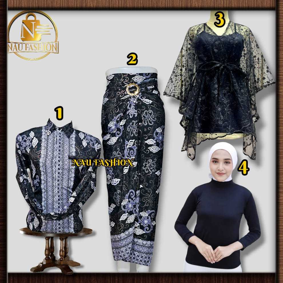 Couple batik kemeja lengan panjang include manset dan outer seragaman keluarga