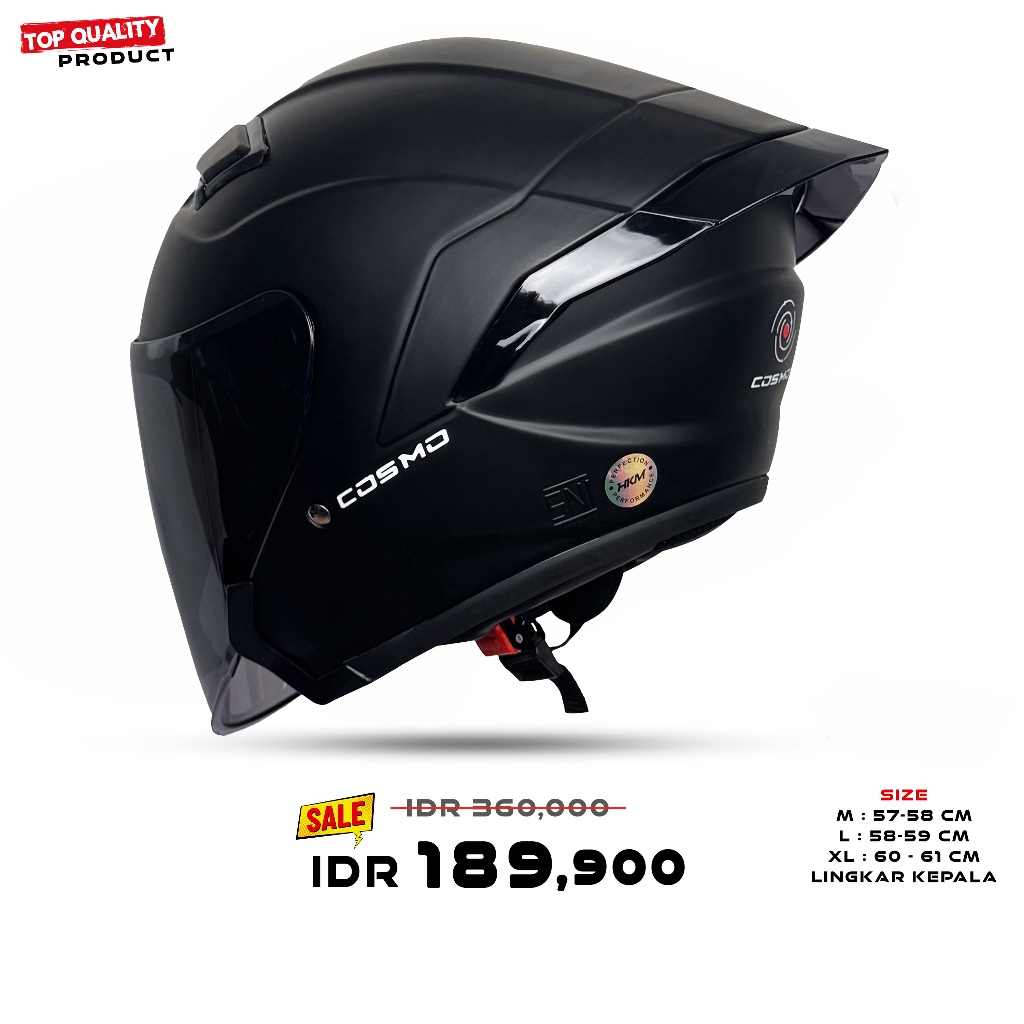 Helm Half Face MLA COSMO | Grey Glosy Kaca Hitam | Helm Premium Paket Ganteng Untuk Pria Dan Wanita