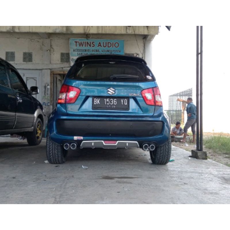 bodykit bumper belakang universal plastik . diffuser rear bumper universal. double knalpot muffler. Aksesoris bumper be