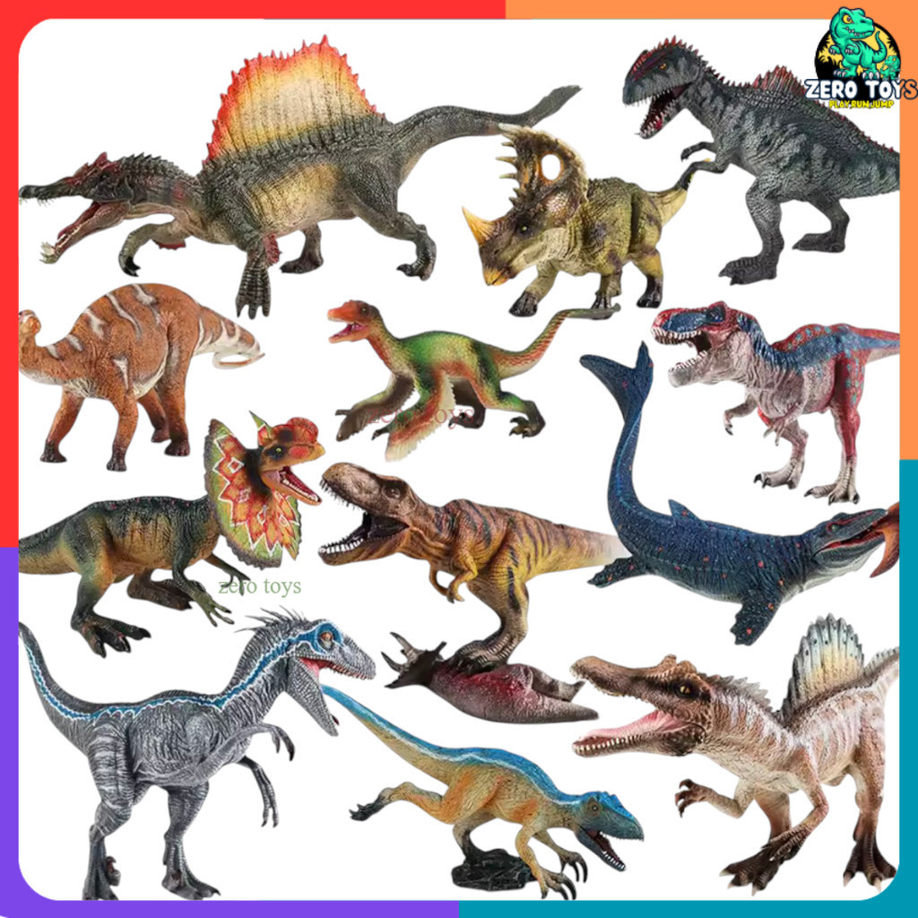 Indominus Rex, Gigan Hybrid Mutant, Spiny Dragon, Pyroraptor, Giganosaurus Brown, Plesiosaurus, Velociraptor Brown, Giganosaurus Black, Carnotosaur Sastrei, Giganotosaurus, Ceratosaurus Hijau, Apatosaurus Coklat, Peterosaurus, Parasaurolphus Hijau, Triceratops, New Rex Hijau, Vastatosaurus, king Giganotosaurus, Scoty Tyranosaurus, Velociraptor Blue, Triceratops Herbivor, Therizisaurus Hijau, RAPTOR 39cm, INDORAPTOR JUMBO, Spinosaur AegypHijau, Tyran-Warna-Lumut