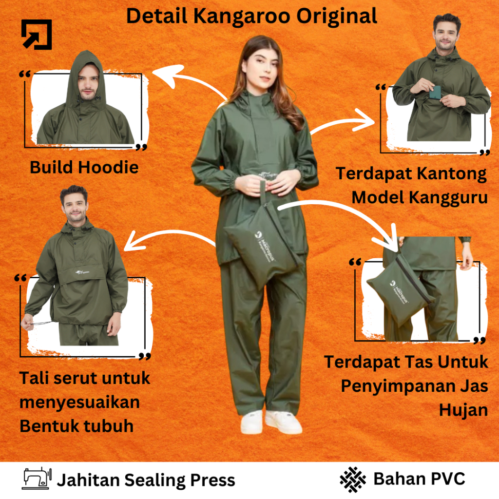 Tojan Kangaroo Raincoat Jas Hujan Kangguru Anti Tembus Mantel Jas Hujan Pria Wanita Kanguru Jas Hujan Gunung Mantel Huja