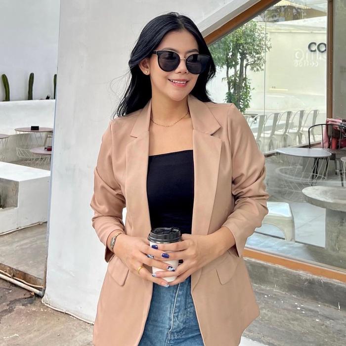 Blazer Blanik Wanita Kantor Santai Colourfull Furing Kerah Kupu Baju Oversize Tangan Panjang - 183 Cream, S