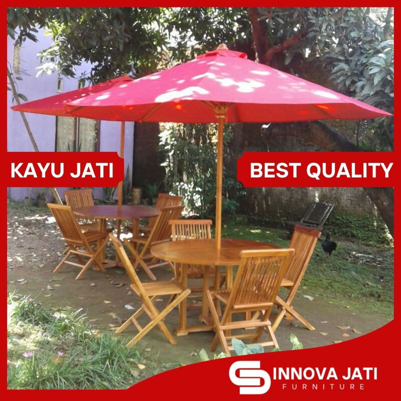 LANGSUNG KIRIM Kursi Meja Payung Cafe Pantai Taman Outdoor Kayu Jati