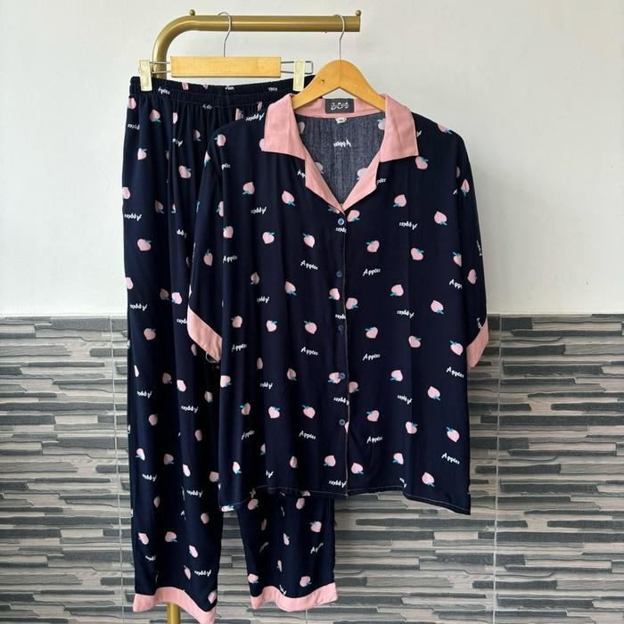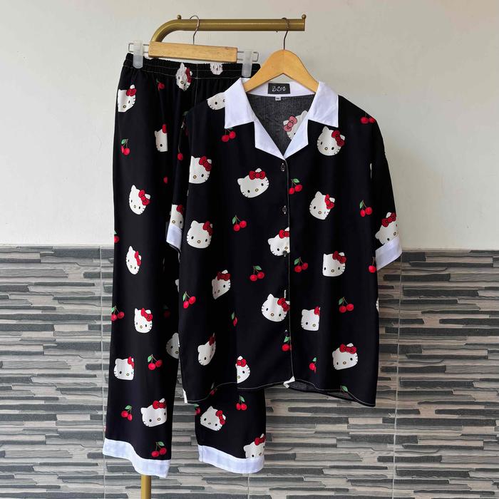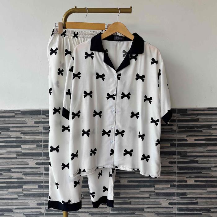 (Ld 120 Dan 140) Baju One Set Setelan Wanita Atasan Tangan Pendek Celana Panjang List Kombinasi Berkerah Rayon Premium S