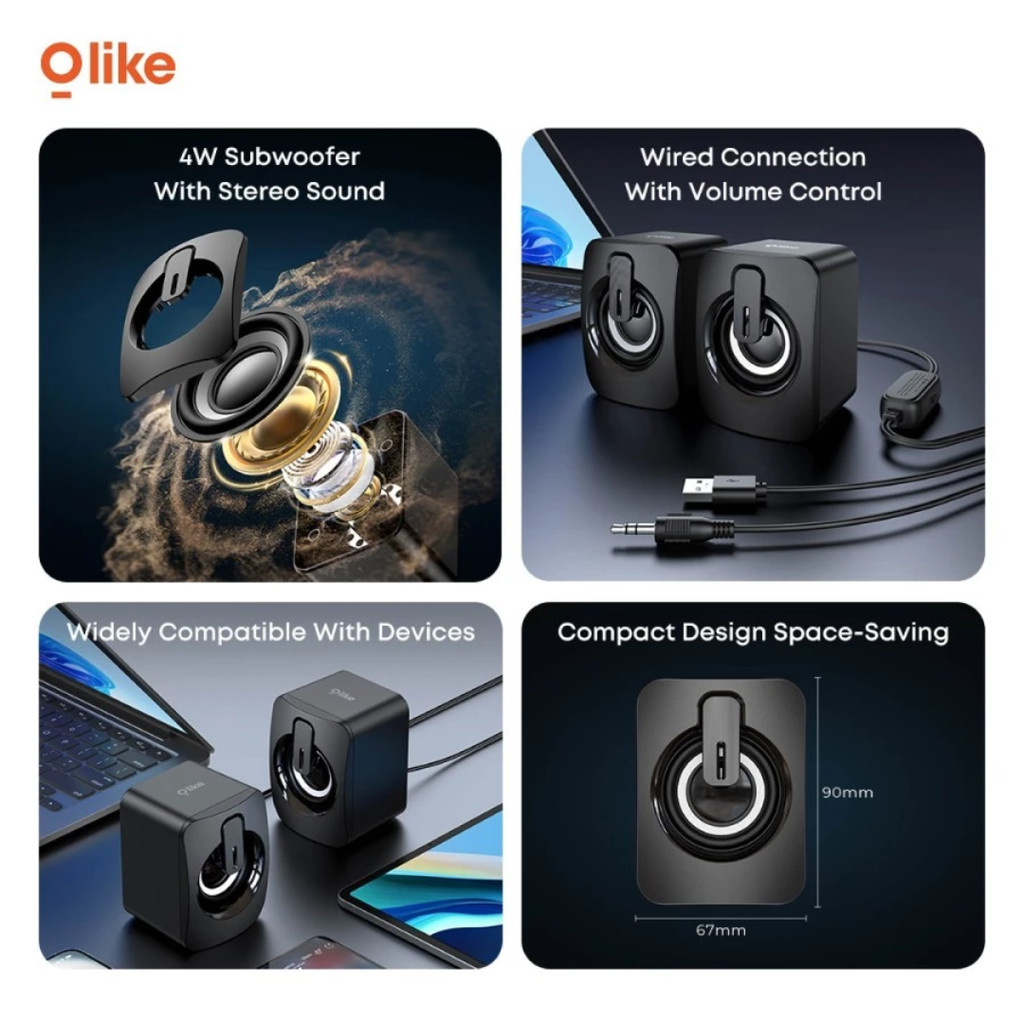 OLIKE SC01 Multimedia Wired Speaker 4W Subwoofer Stereo Sound Aux 3.5Mm Jack Audio