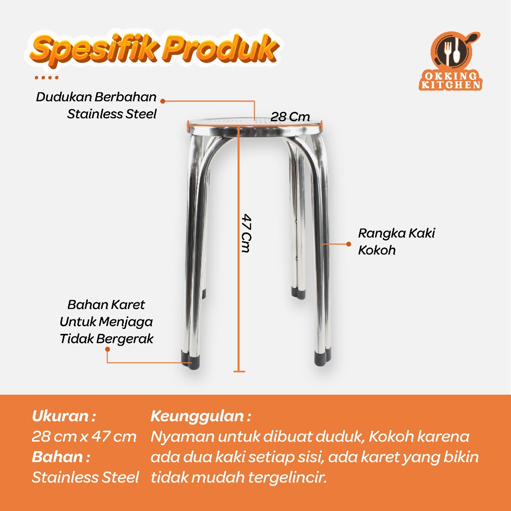 Kursi Bakso Stainless Steel Bangku Bakso Susun Bangku Bar Bangku Cafe BD05