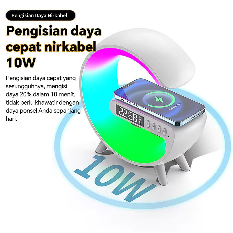 Speaker Bluetooth Super Bass G63 With Wireless Charging Smart RGB Speaker 3W Lampu Tidur Alarm