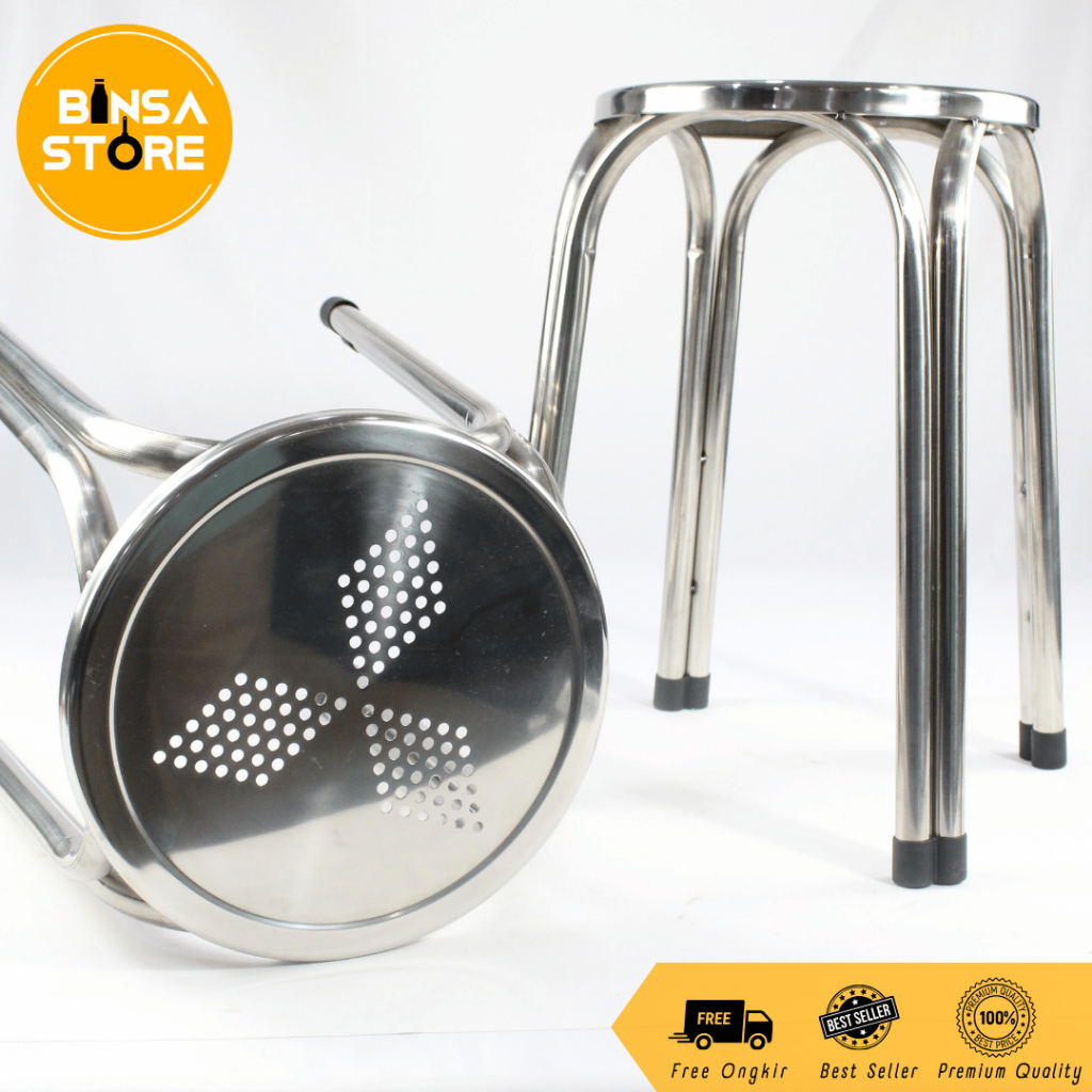 Kursi Bakso Stainless Steel Bangku Bulat Bangku Aluminium Kursi Bar Bangku Cafe Warung - BD05