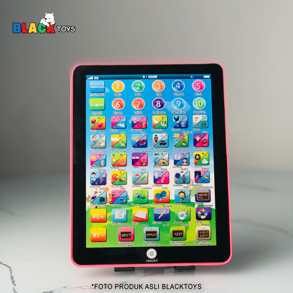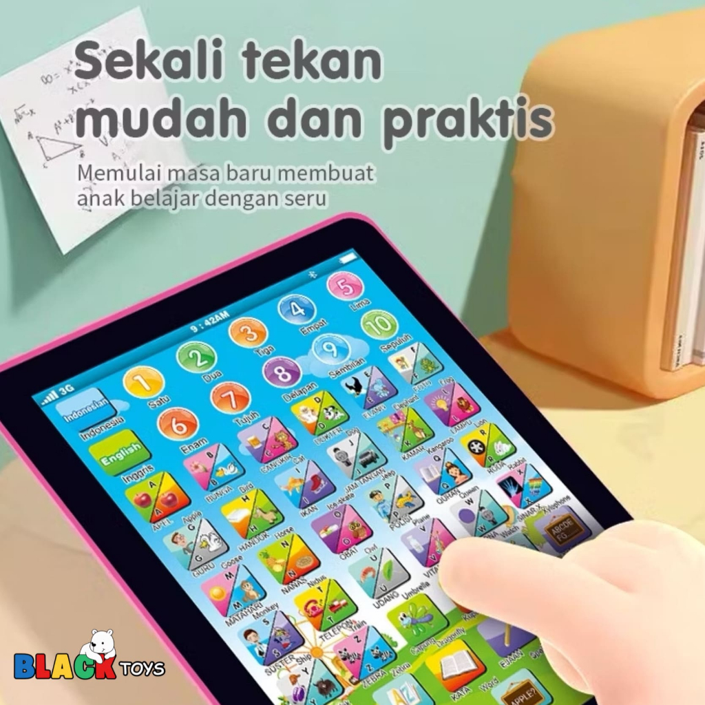 BlackToys - Mini Play Pad Anak 2 Bahasa | Mainan Edukasi Bahasa Inggris & Indonesia | Tablet Mainan Anak