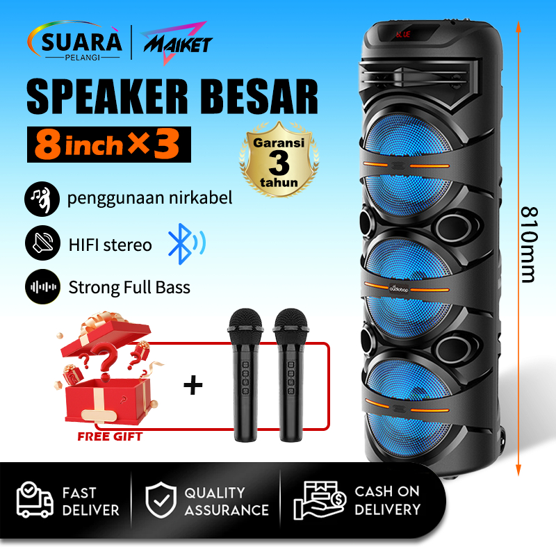 【SUPER BASS】MAIKET Speaker jumbo Bluetooth Portabel Karaoke Besar Super Bass 8 Inch x3 Nirkabel Wireless 8333