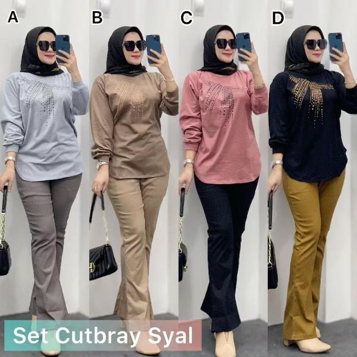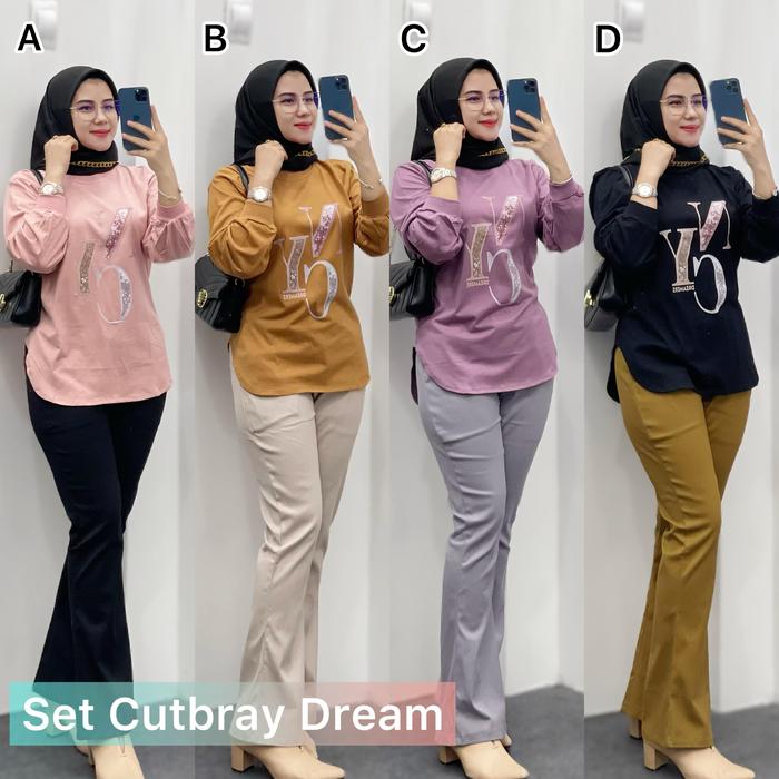 Setelan Oneset Wanita Celana Chinos Cutbray Atasan Kaos Combed Premium All Size Super Adem Dan Nyaman Dipakai - Set Chi