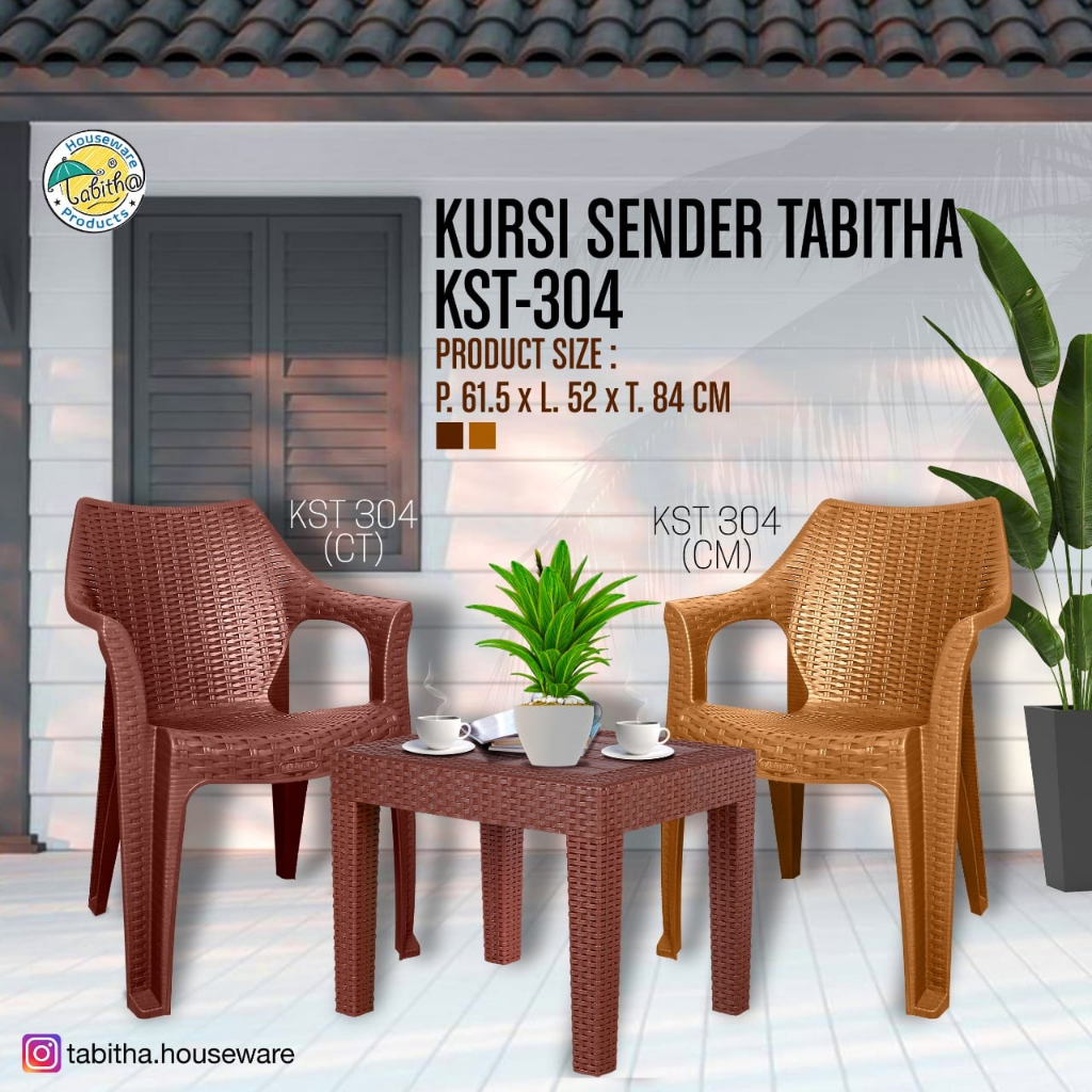 Kursi teras anyaman plastik Tabitha dan meja