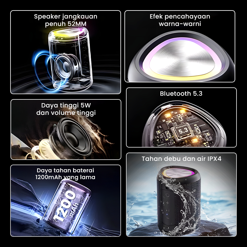Smarteck Speaker Bluetooth SK07 Bass RGB Waterproof IPX4 Bluetooth 5.3 1200mAH Portable Original - Garansi 1 Tahun