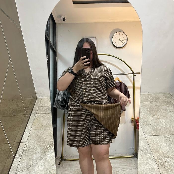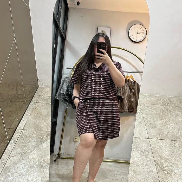 One Set Rok Celana (Rokcel) Jumbo Skort Busui Friendly Tweed Knit - Brown Tweed, Ld115