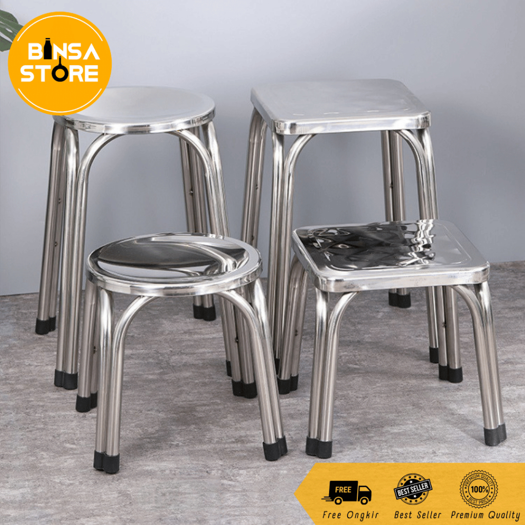 Bangku Bakso Stainless Steel Tebal Kursi kaki 4 Warung Stainless Anti Karat Kuat Kokoh BINSA - BD02