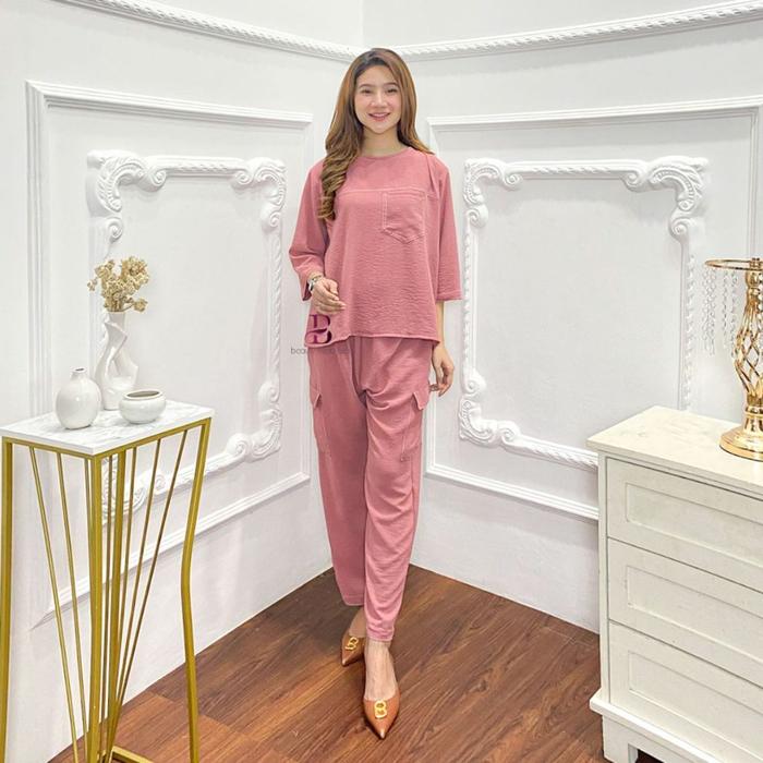 Dasterbeauty - Revina Baju Setelan Wanita Kekinian Terbaru 2025 One Set Korean Style Setcel Remaja Dewasa Crinkle Airflo