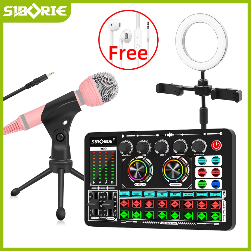 [Star] Siborie Soundcard F999+Sf666/Ms33/36/38 Mic+E10 Headset+Ring Light Paket Lengkap Mixer Bluetooth Sound Card For Streamin