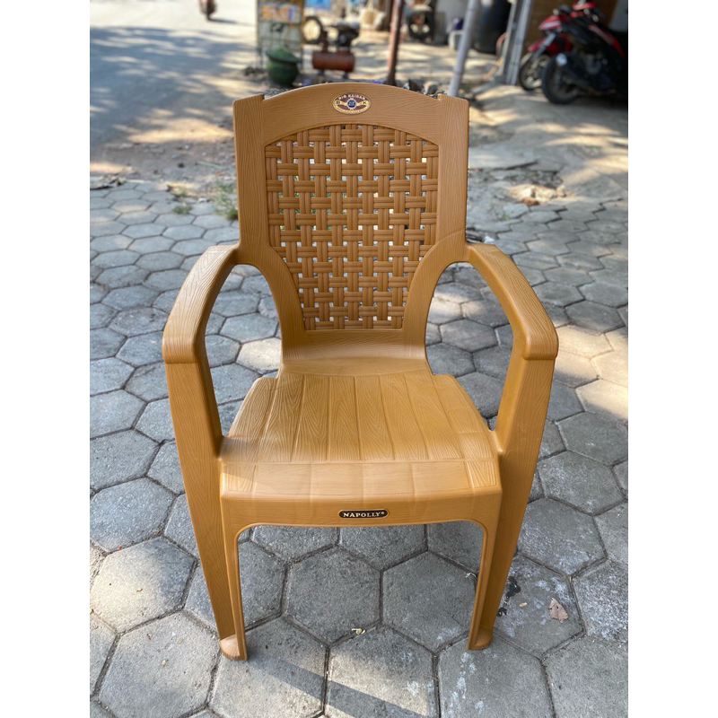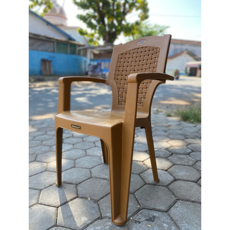 Kursi Plastik Teras Rotan Coklat Napolly Ori Bijian & Paketan | Kursi Napolly Ori Rotan Lengan|
