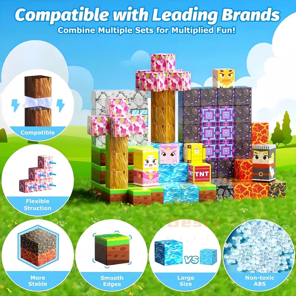 Mainan Edukasi Anak Balok Magnetik 3D DIY Blok Bangunan Hadiah Anak Laki-Laki & Perempuan