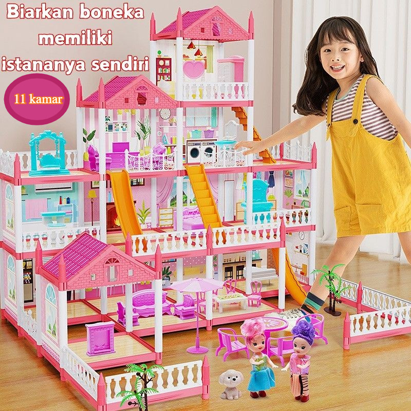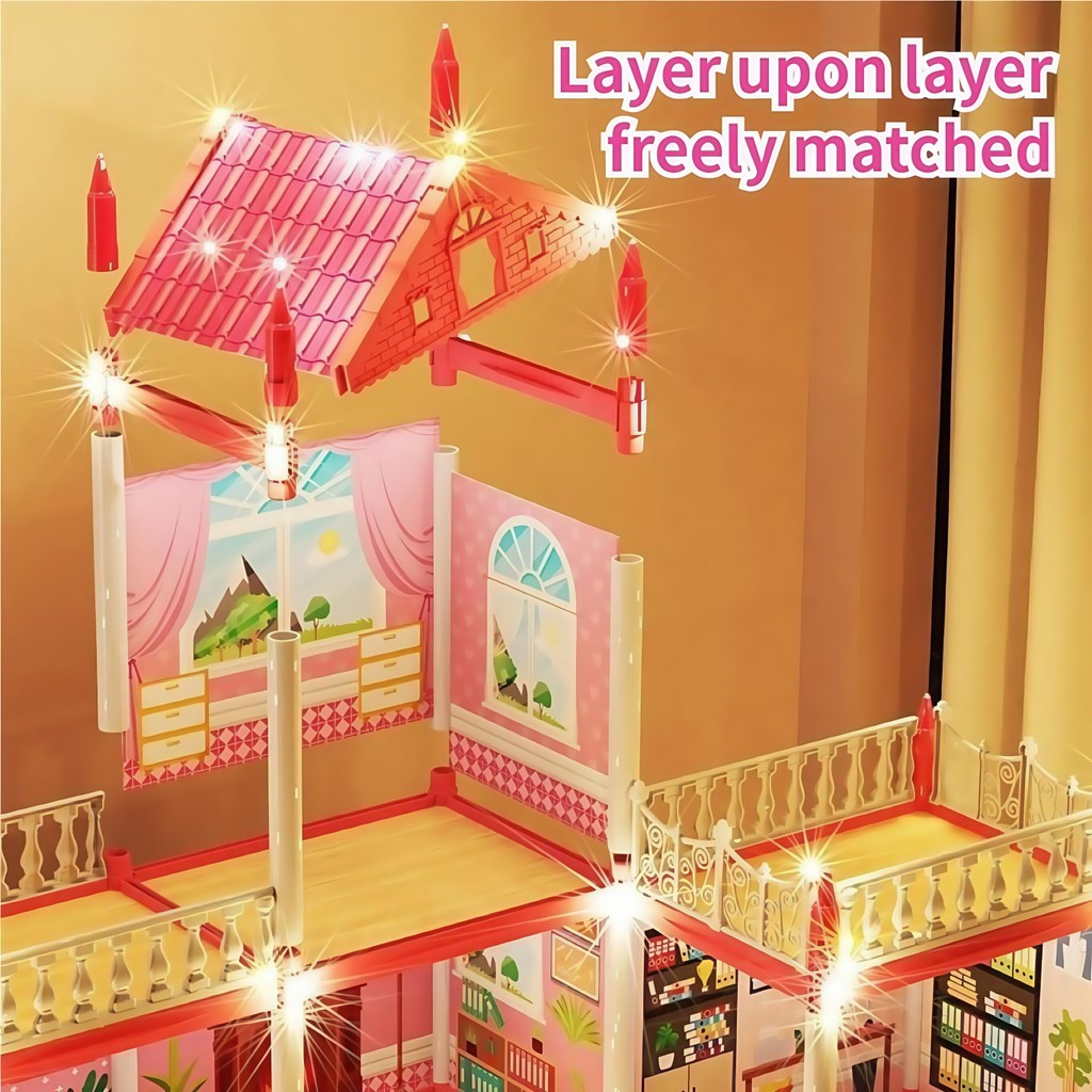 Cheapest!Rumah Mainan Rumah Rumahan 3D Princess Kastil Villa Dengan Lampu Dan Boneka Perakitan
