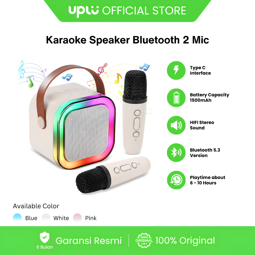 UPLU Mini Speaker Wireless Bluetooth Karaoke Full Bass Portable 3D Stereo RGB Light With 2 Mic