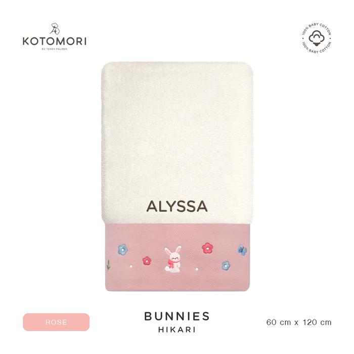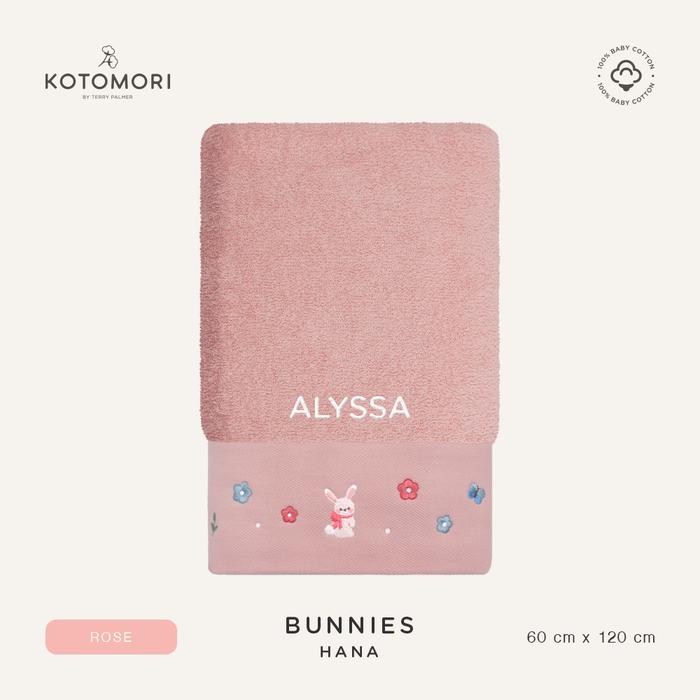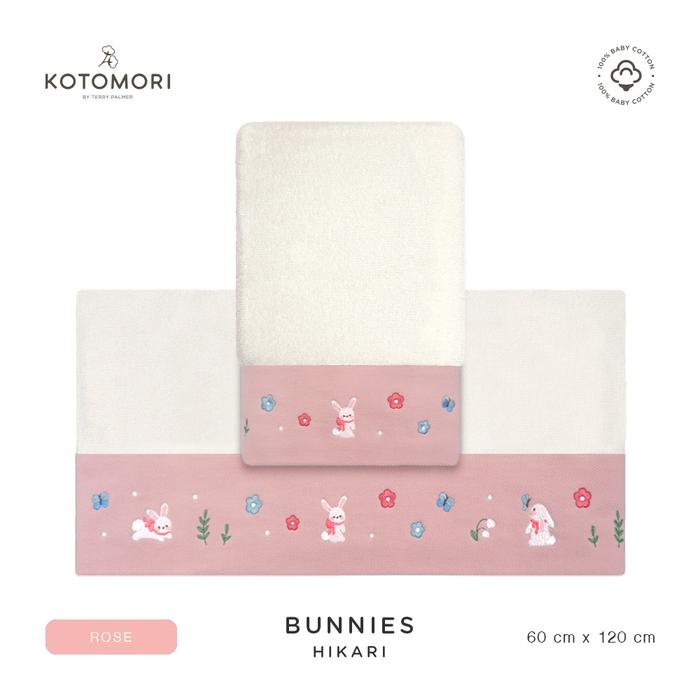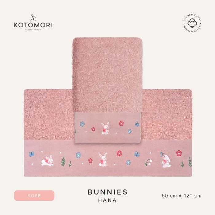 KOTOMORI BUNNIES - HANDUK MANDI BAYI DAN ANAK 60X120CM - BUNNIES PINK, TANPA NAMA