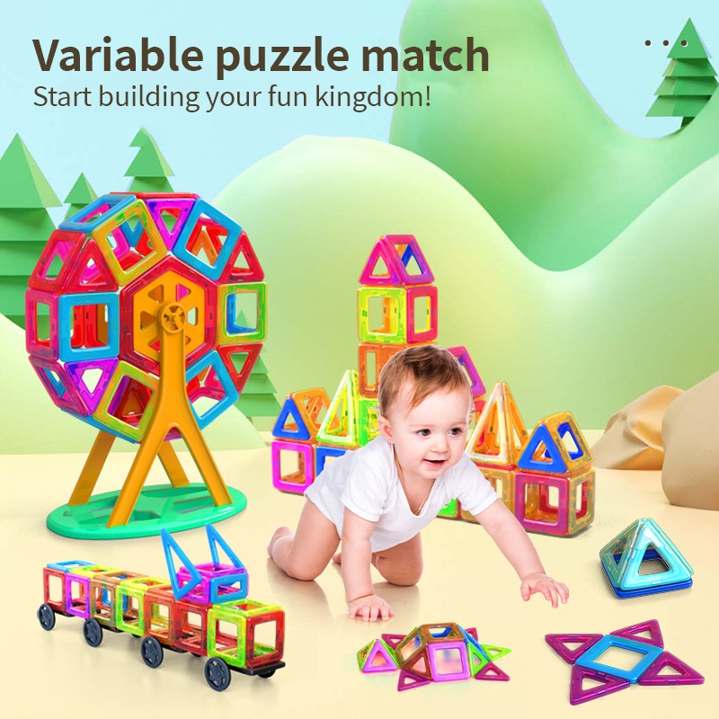 MOONTOY DIY Mainan Block Bangunan Lembar Magnetic Keping Magnet Susun Mainan Edukasi