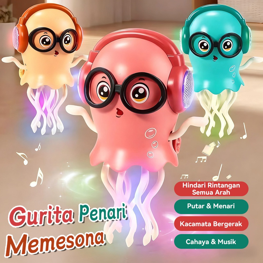 Jojotoy Gurita Menari Mainan Ubur-Ubur Menari Musik Lampu Dancing Cumi Sensor Gerak Gestur Anak
