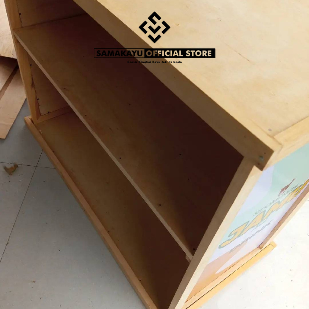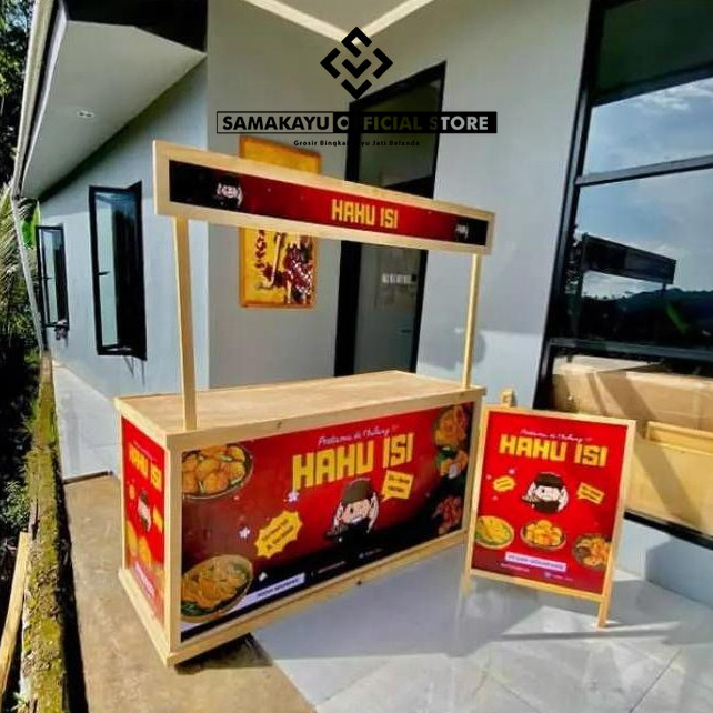 Booth Portable Lipat Kayu Pinus Premium – Meja Usaha Jualan Food & Minuman + FREE Desain Banner Custom, Kokoh & Rapi