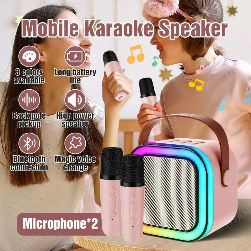 【Ramadan Promotion】Speaker Bluetooth 2 Mic 1 Set Wireless Karaoke Mini Portable Full Bass Live Broadcast Party Salon Bluetooth bt Speaker Karaoke