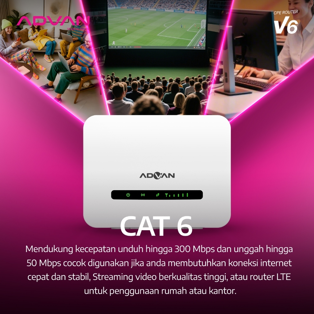 ADVAN CPE Router V6 CAT 6 Dual Band 5GHZ 4G LTE Unlock All Operator Up to 64 User Stabil & Cepat - Garansi 1 Tahun