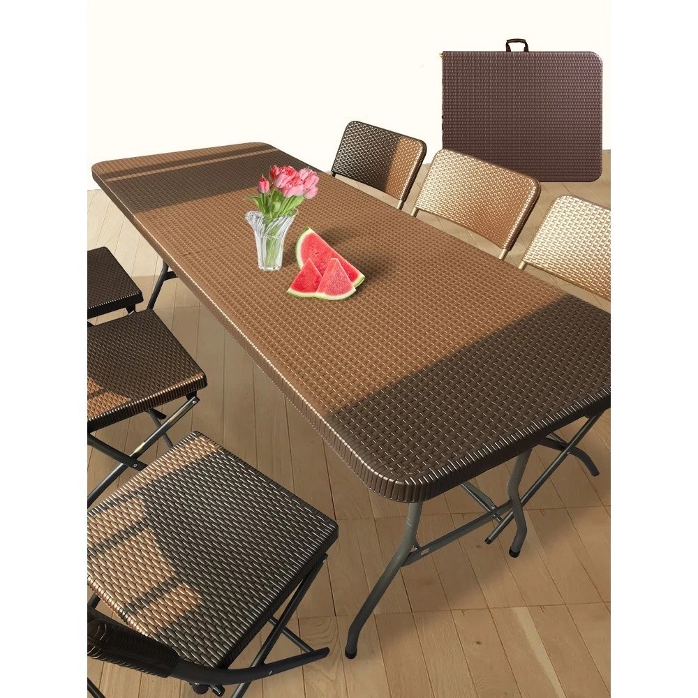 Meja lipat portable cokelat Meja lipat jualan Penebalan 1.2/1.5/1.8m meja lipat plastik meja lipat Outdoor Indoor