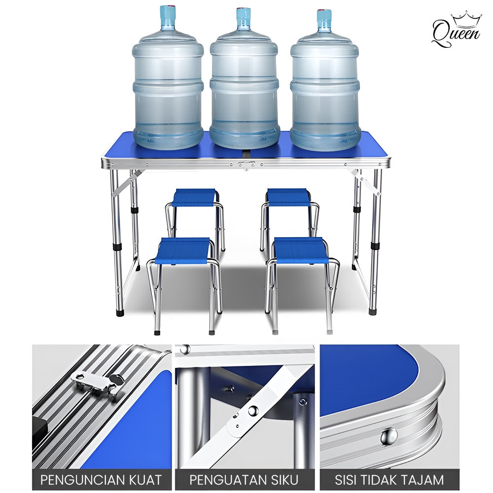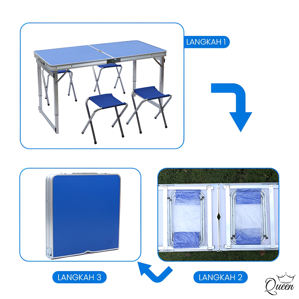 QG Meja Lipat Jualan Makan Lipat Set Koper Kaki Bulat/Persegi Berkualitas