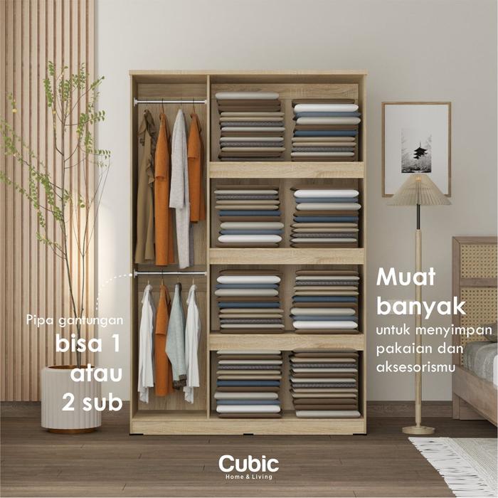 [PROMO] CUBIC LEMARI PAKAIAN MINIMALIS ALMARI BAJU 3 PINTU CERMIN LUNA LP 3P WHITESONOMA OAK