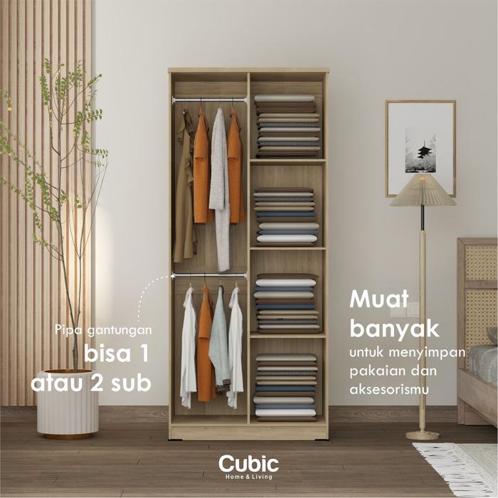 [PROMO] CUBIC LEMARI PAKAIAN MINIMALIS ALMARI BAJU 2 PINTU CERMIN LUNA LP 2P WHITESONOMA OAK