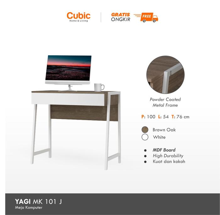 [PROMO] CUBIC MEJA KERJA RUMAH MEJA KOMPUTER DUDUK MINIMALIS YAGI MK 101 J BROWN OAK WHITE