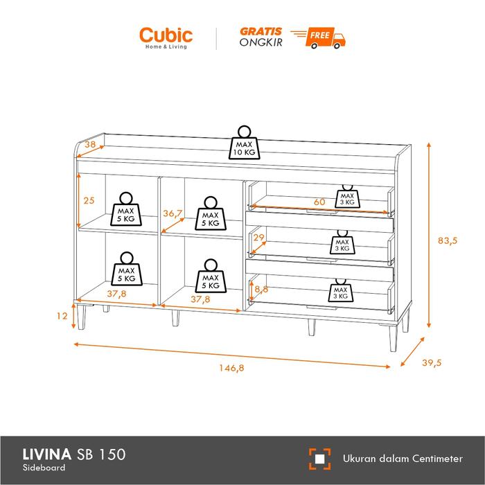 [PROMO] CUBIC SIDEBOARD MINIMALIS BUFET LEMARI KABINET LIVINA SB 150 SONOMA OAK WHITE