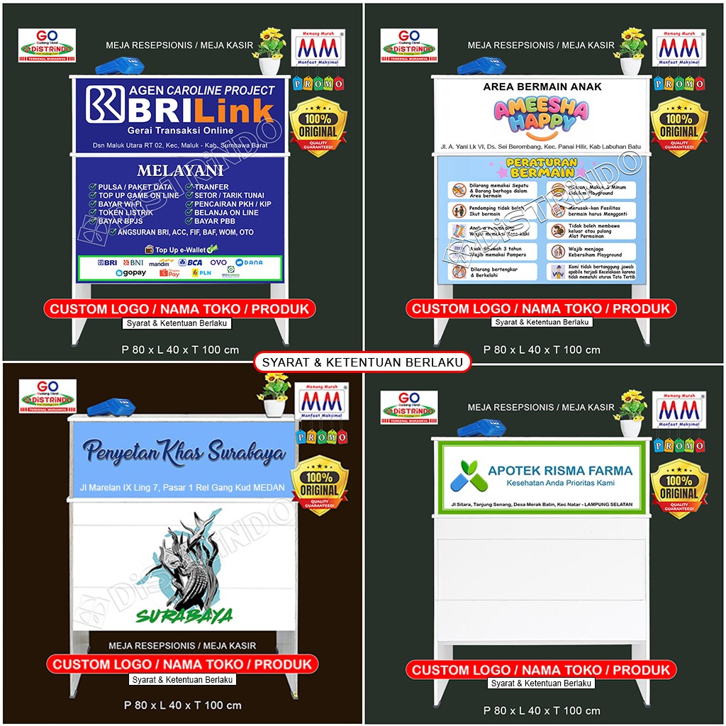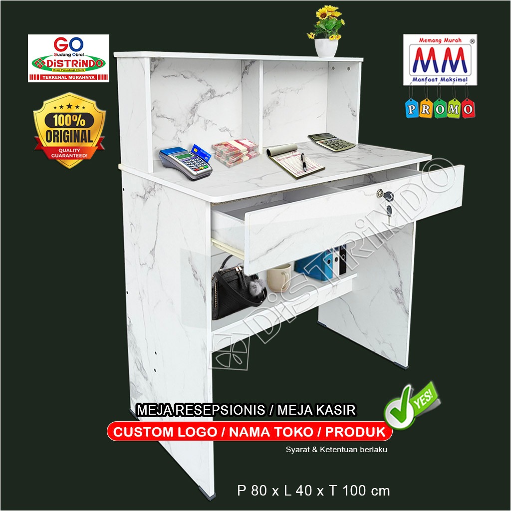 Distrindo - Meja Kasir Bisa Custom NAMA TOKO ada LACI Pakai KUNCI dan Rak dibawah Meja