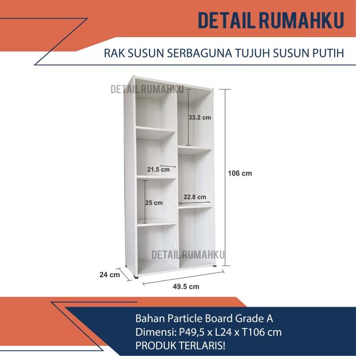 [PROMO] LEMARI RAK BUKU 7 SUSUN SERBAGUNA RAK KAYU RAK BUKU RAK PAJANGAN 7 PUTIH