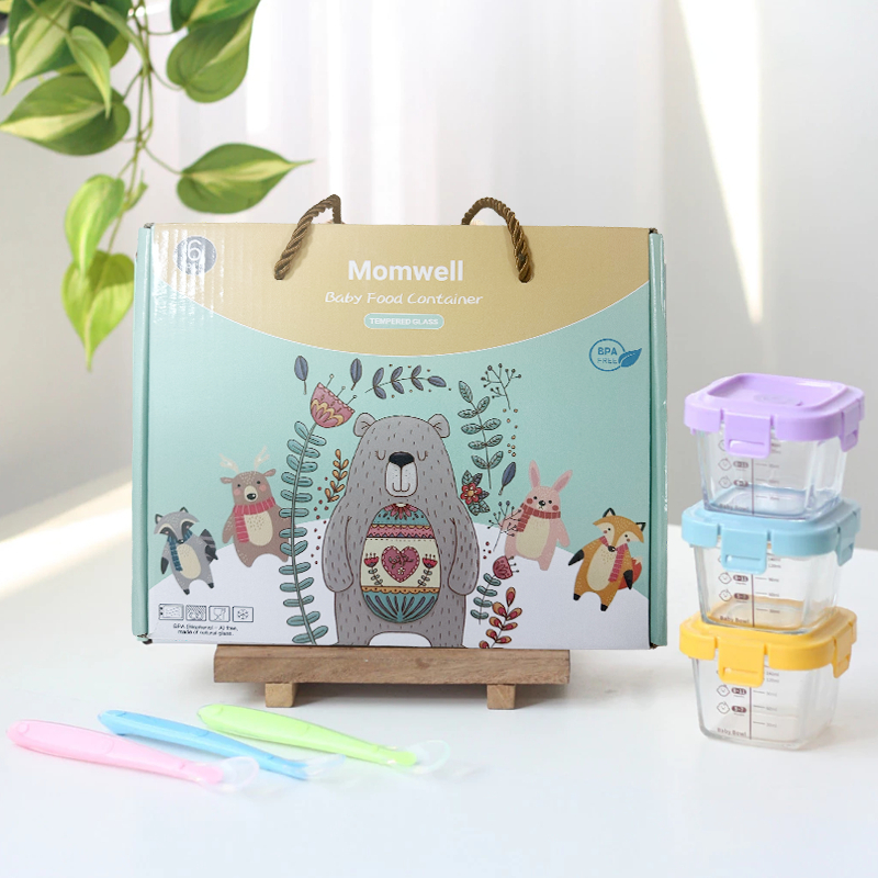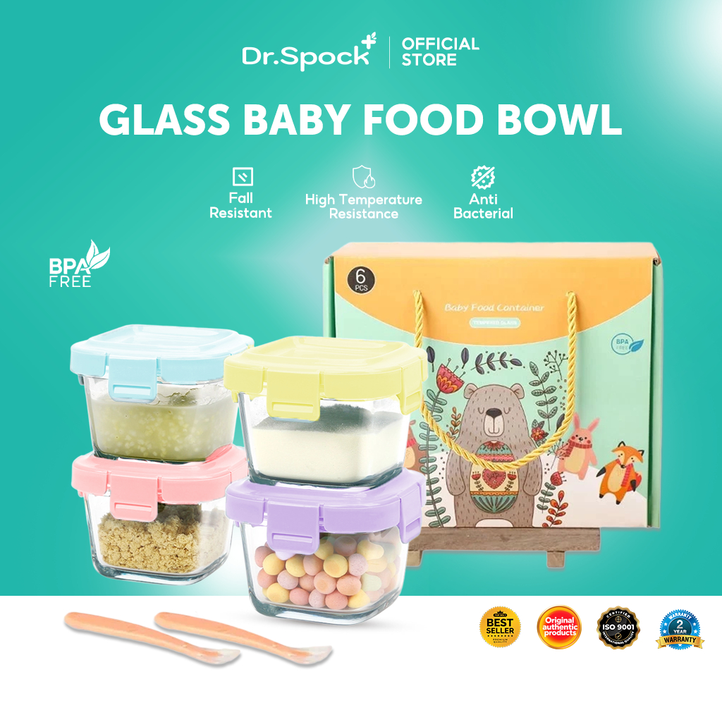 Dr.Spock 6Pcs/Set Tempat Mpasi Kaca Hampers Baby Gift Set Wadah Mpasi Kaca Kado Lahiran Bayi + Sendok Mpasi Silicon Bayi