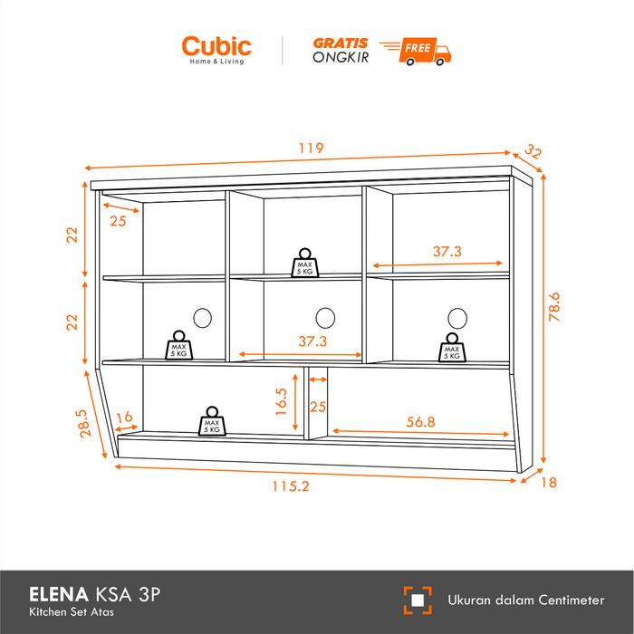 [PROMO] CUBIC KITCHEN SET 3 PINTU MINIMALIS RAK ATAS DAPUR LEMARI GANTUNG ELENA AVE KSA 3P SONOMA OAKWHITE GLOSSY