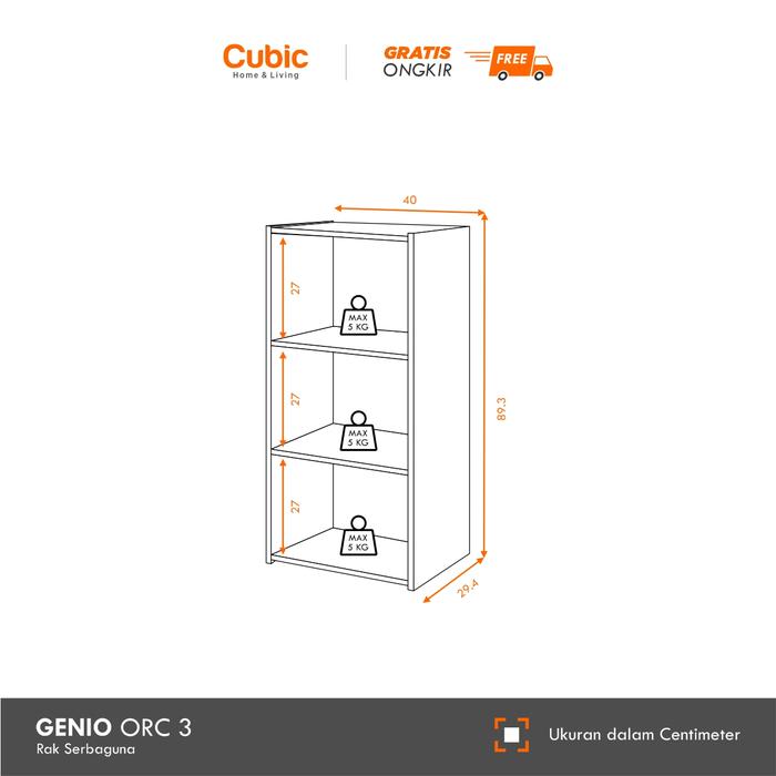 [PROMO] CUBIC RAK 3 SUSUN MINIMALIS LEMARI BUKU SERBAGUNA GENIO ORC 3 WHITE