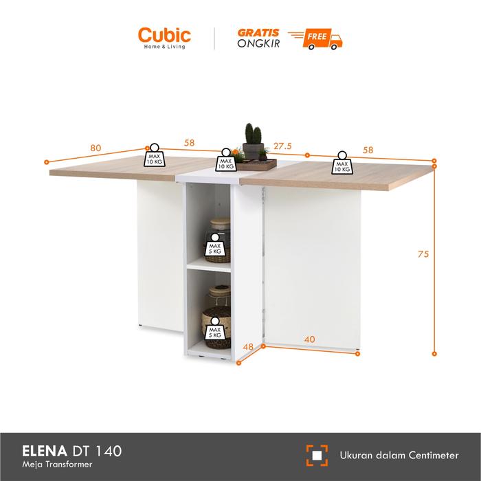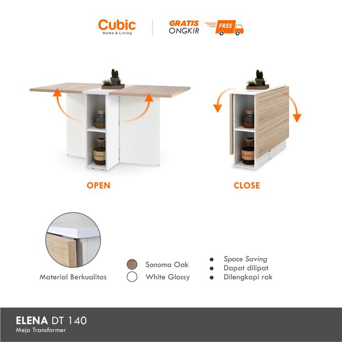 [PROMO] CUBIC MEJA MAKAN MINIMALIS DINING TABLE ELENA DT 140 SONOMA OAKWHITE