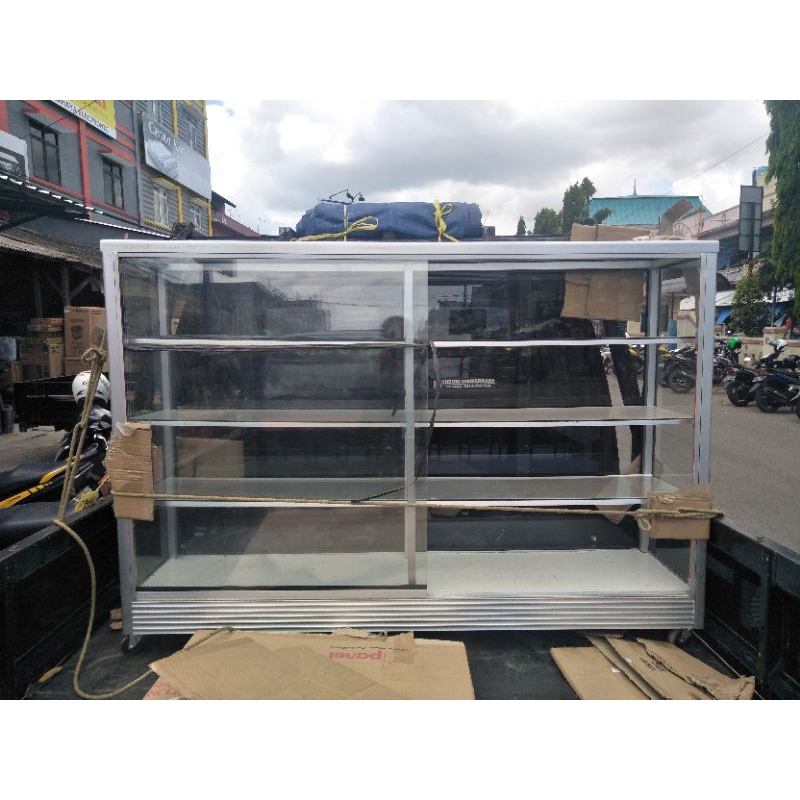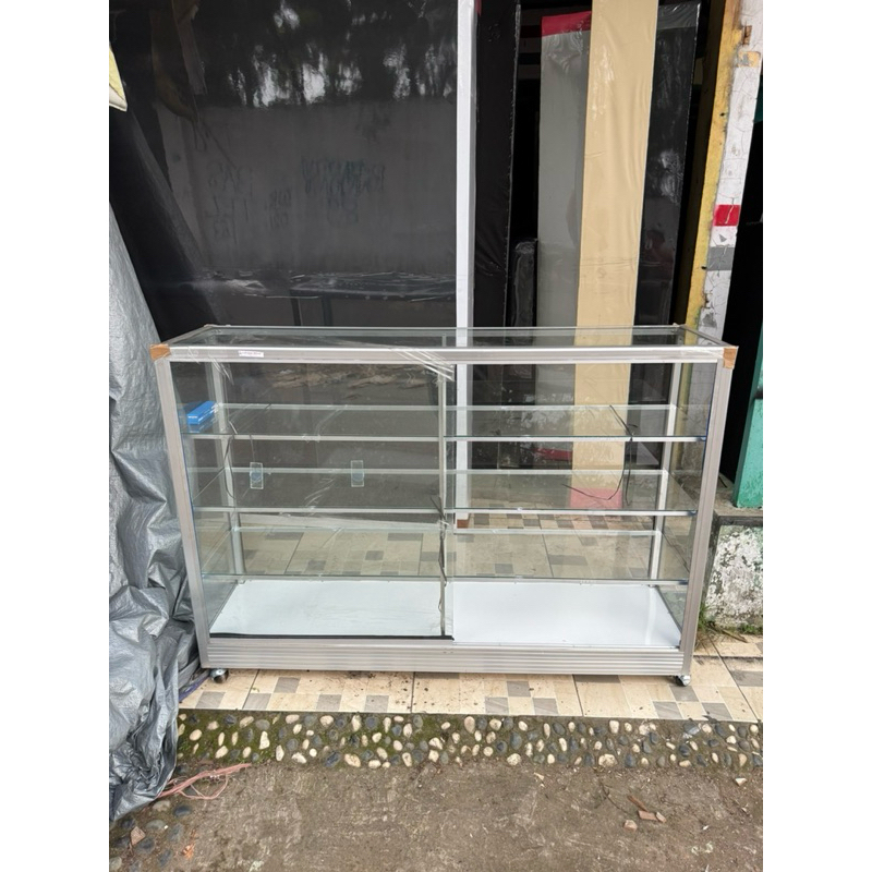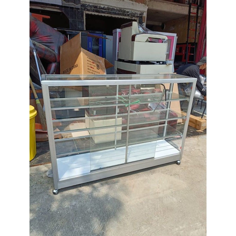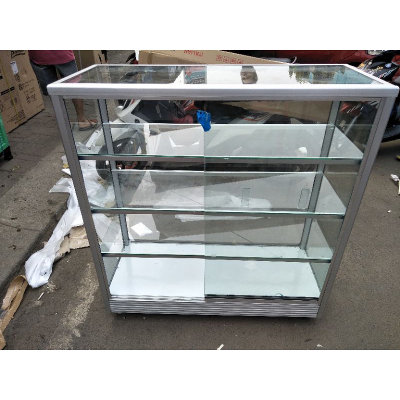Etalase warung 1 meter / etalase warung 1.5 meter / etalase warung 2 meter tinggi 107 lebar 47 kaca tebal 4 ml plus kunc