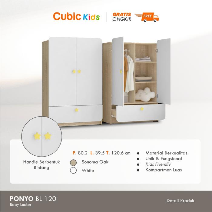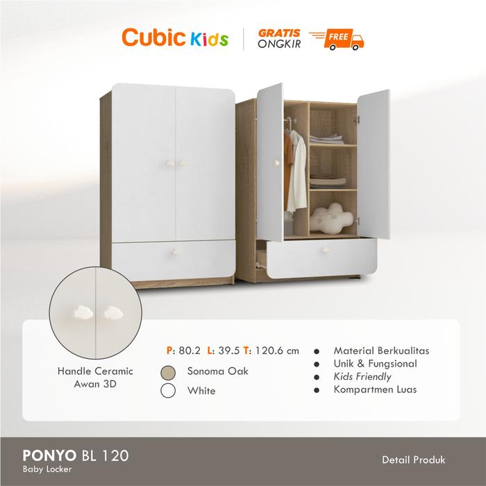 [PROMO] CUBIC KIDS LEMARI PAKAIAN ANAK MINIMALIS ALMARI BAJU PONYO BL 120 AWAN